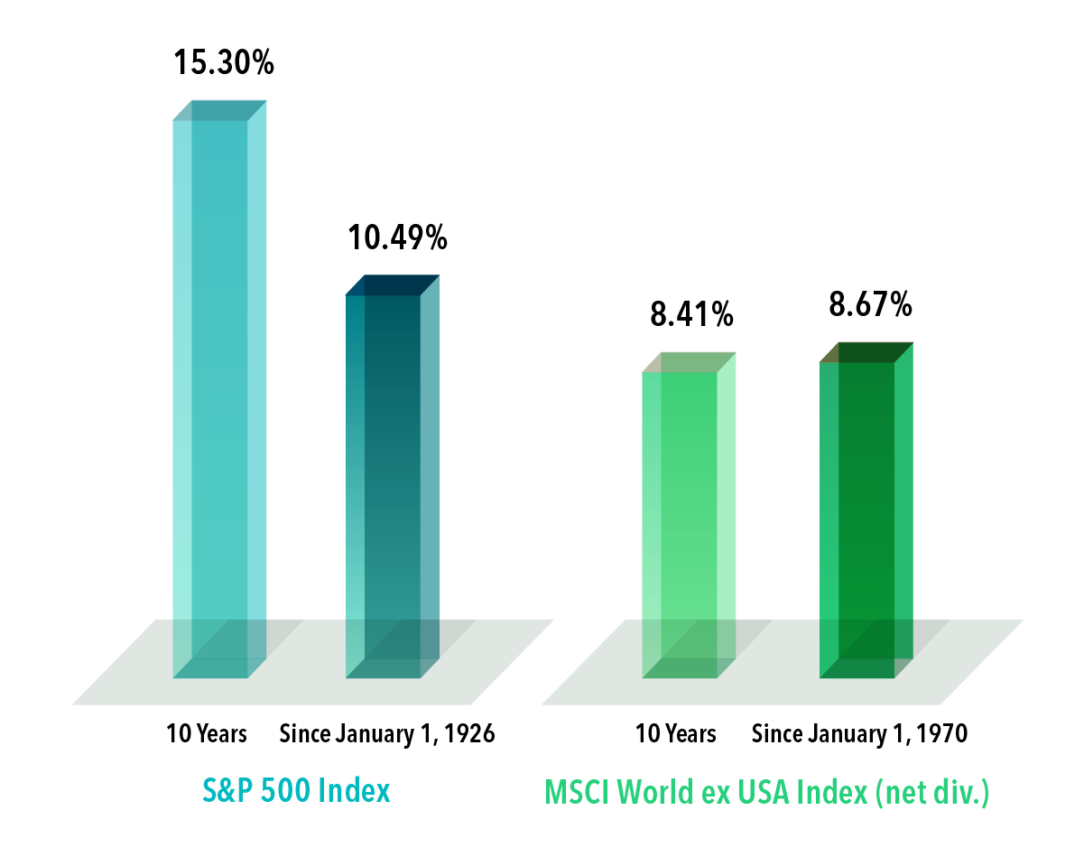 Indexing became the majority share of US equity mutual fund and ETF assets under management years ago, representing about 64% of assets as of September 30, 2025. But indexing is not just popular for US stocks. About 57% of non-US stock AUM is in index funds. And yet, large cap international stocks, represented by the MSCI World ex USA Index, have returned 8.41% over the last 10 years, near dead-on with their 8.67% return since 1970.