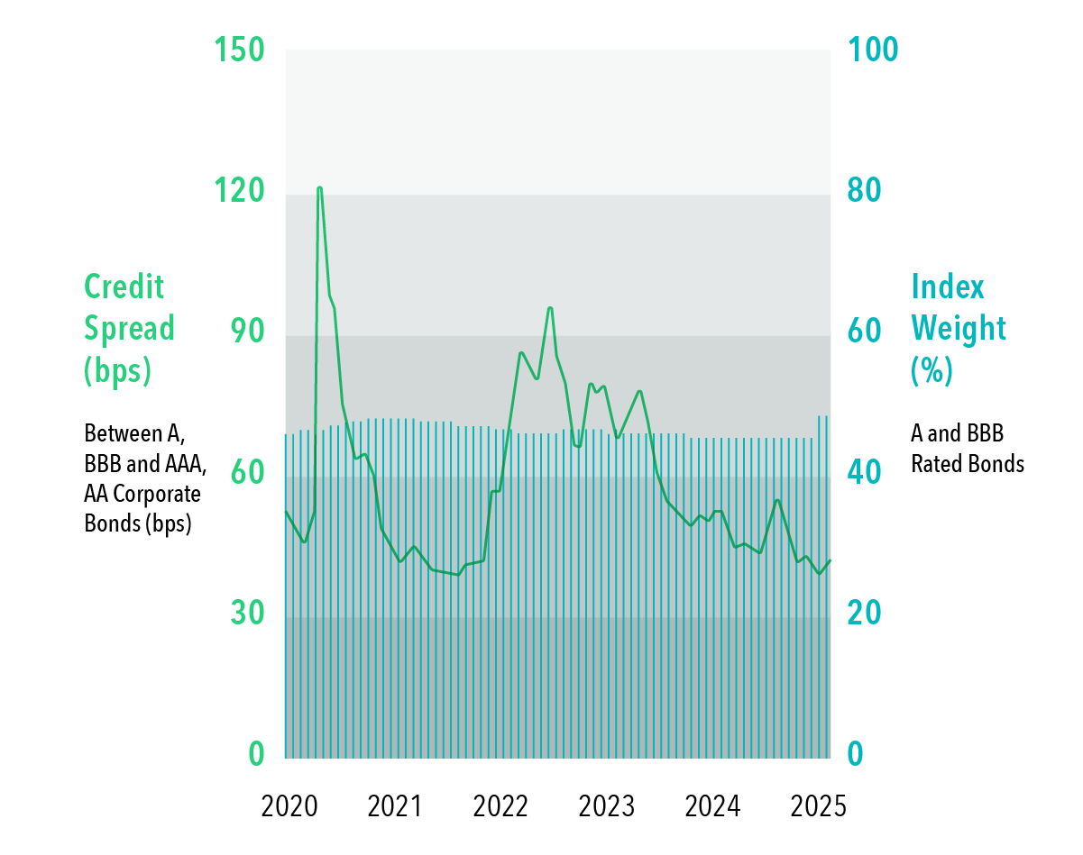 When credit spreads widen, premiums for lower-rated bonds have historically been higher on average, yet index bond funds often cannot adjust credit exposure dyn